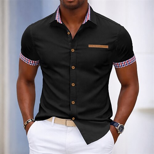 Per uomo Camicia Camicia elegante Camicia con Bottoni Blocco di colori Quotidiano Affari Blu chiaro Nero Bianco Grigio Manica Corta Collo ripiegato Estate Abbigliamento Patchwork