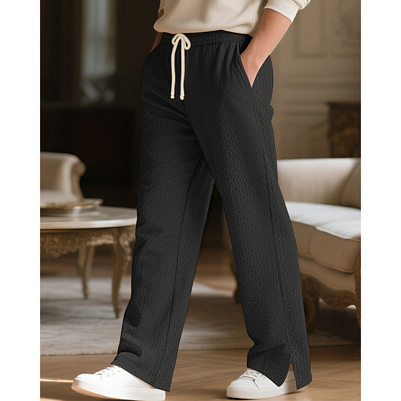 Men's Sweatpants Trousers Straight Leg Sweatpants Jacquard Drawstring Pocket Plain Comfort Sports Outdoor Daily Fashion Casual Black Khaki Micro-elastic