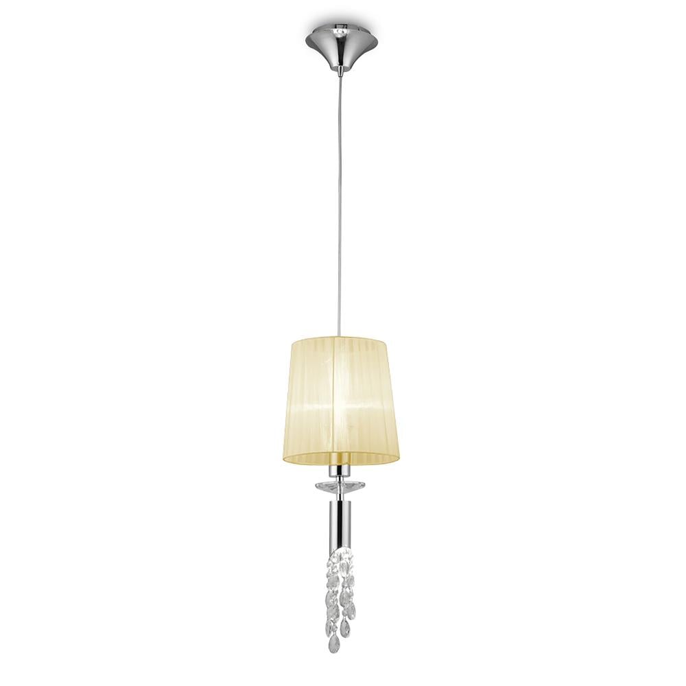 Tiffany Pendant 1+1 Light E27+G9 Polished Chrome With Cream Shade & Clear Crystal Mantra