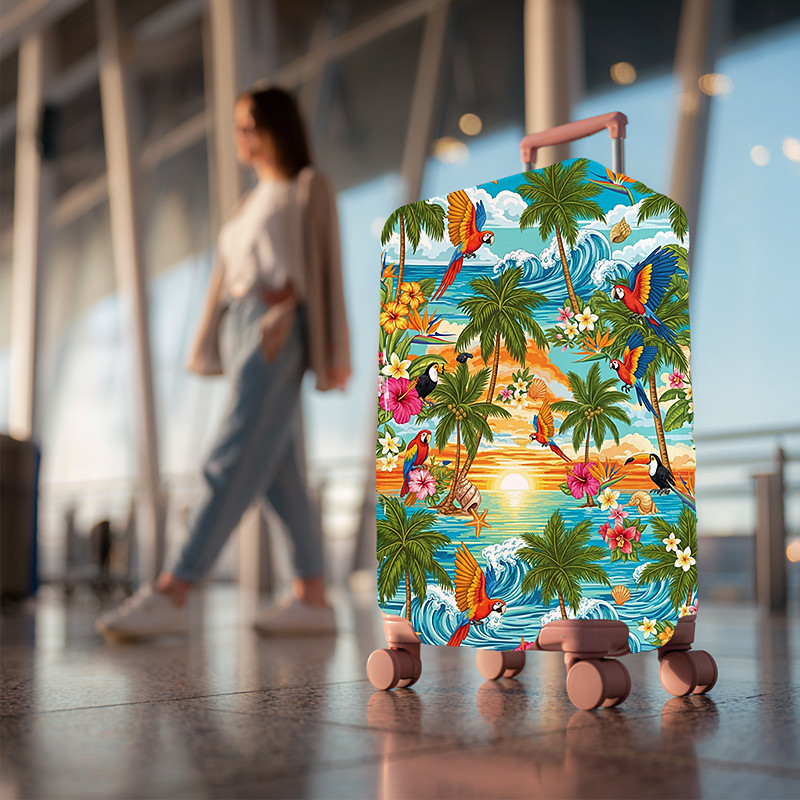 Beach Scenery Printed Luggage Cover Stretch Suitcase Protector Elastic Travel Baggage Cover
