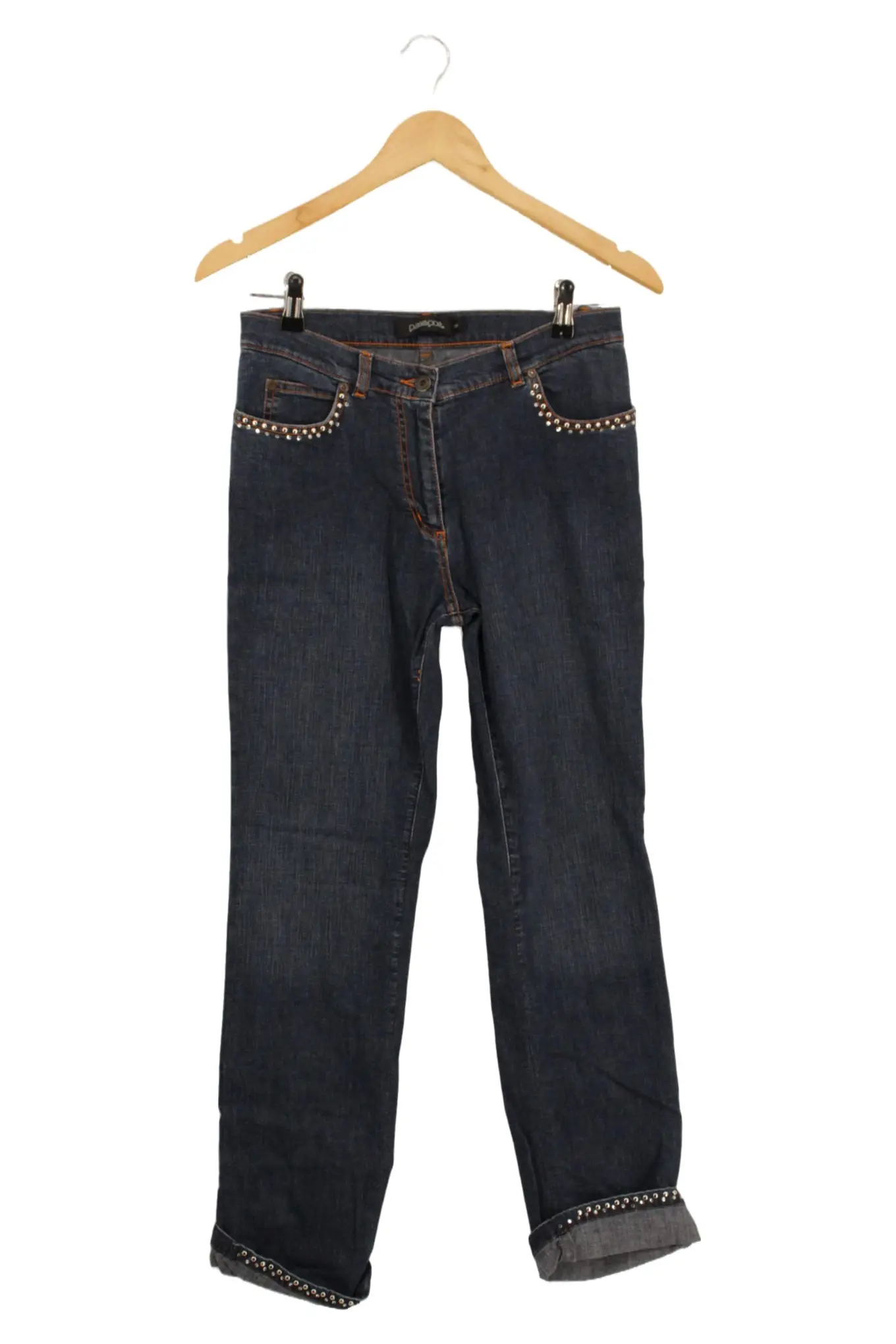 PASSPORT Damen Jeans Slim Fit Größe 36 Blau Nieten