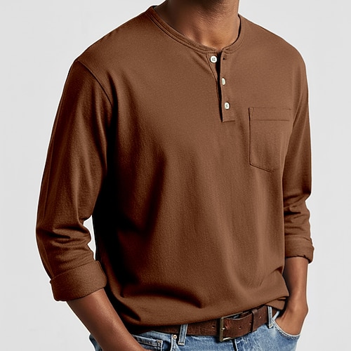 Herren Waffelstrick-T-Shirt Solide / einfarbig Henley nicht druckbar Normal Casual Langarm Klassicher Stil Bekleidung Brautkleider schlicht