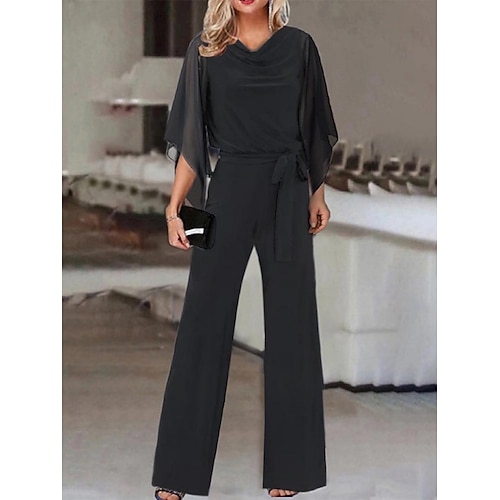 Per donna Normale Tuta Elegante Tinta unica Mezza Manica Gamba larga Girocollo Vita alta Vacanza Quotidiano Vestibilità regolare Nero Vino Blu marino Primavera