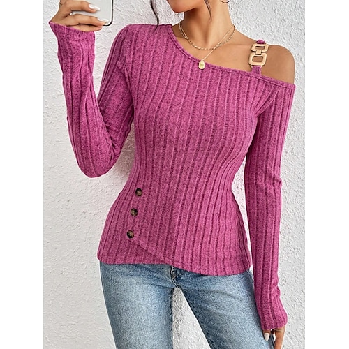 Per donna Blusa Tinta unica Elegante Casual Manica Lunga Asimmetrico Top Regolari Quotidiano Patchwork Bottoni Fucsia Primavera Autunno Inverno