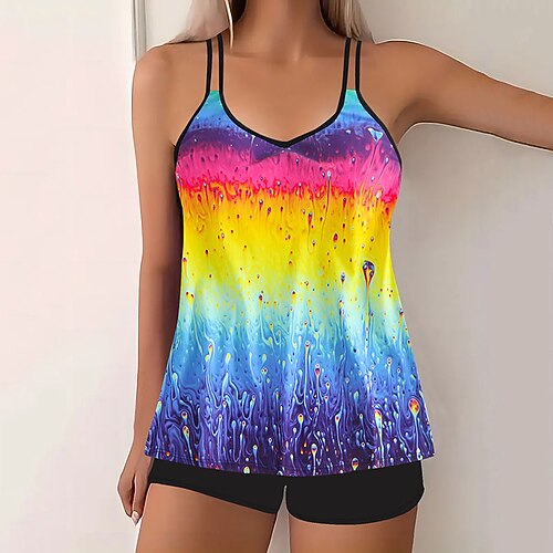 Per donna Costumi da bagno Due pezzi Shorts Costume da bagno Senza schiena Vacanza Abbigliamento da Spiaggia Grafico Girocollo Senza Maniche Costumi da bagno