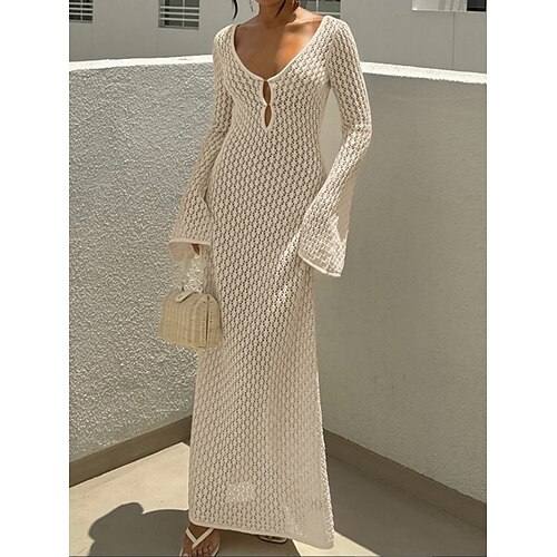Per donna Costumi da bagno Copricostume Vestito da spiaggia Costume da bagno Uncinetto Vacanza Abbigliamento da Spiaggia Tinta unica Scollo a V Manica Lunga Costumi da bagno