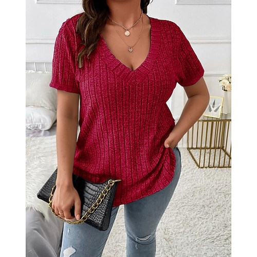 Per donna Maglietta Tinta unica Elegante Moda Classico Manica Corta Scollo a V Top Regolari Quotidiano Uscire Weekend Vino Verde militare Blu Reale Viola Estate Primavera