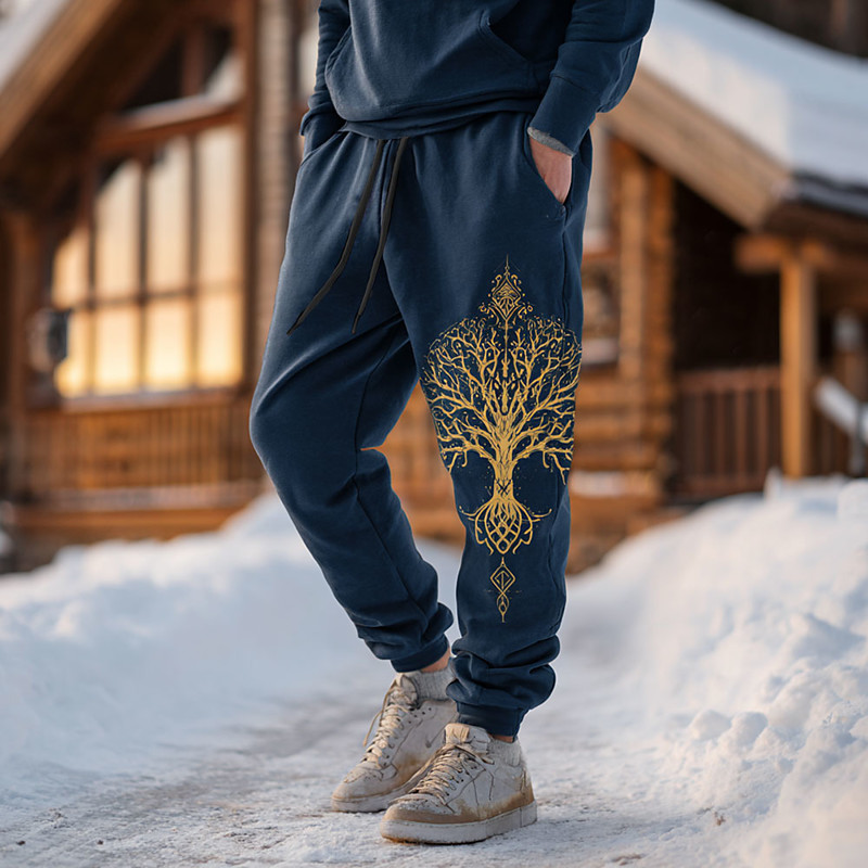 Men's Viking Tree Of Life Celtic Art Sweatpants Joggers Trousers Mid Waist Drawstring Elastic Waist Vintage Retro Outdoor Camping Hiking Hunting Athletic Sweatpants with Pockets Fall Winter 3D Print