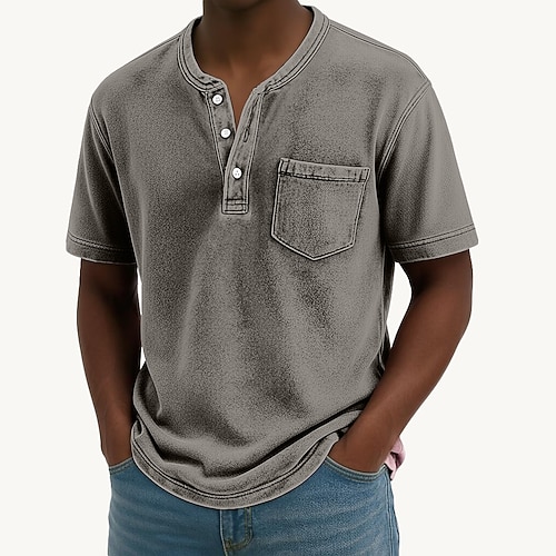 Per uomo Maglia Henley Camicia 100% cotone lavaggio acido Maglietta Manica Corta Tinta unita Retrò Vintage Casual Stile Vintage Lavato Henley Casuale Estate Primavera Autunno Nero Rosa Grigio