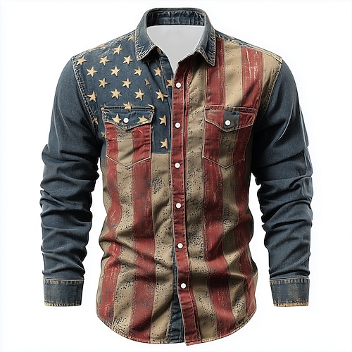 Per uomo Stampa Floreale Ferro di cavallo Fiori Camicia Camicia Western Camicia da cowboy Manica Lunga Vintage Retrò All'aperto Vacanza Primavera Autunno Collo ripiegato Stampa 3D Camicia tipo lino