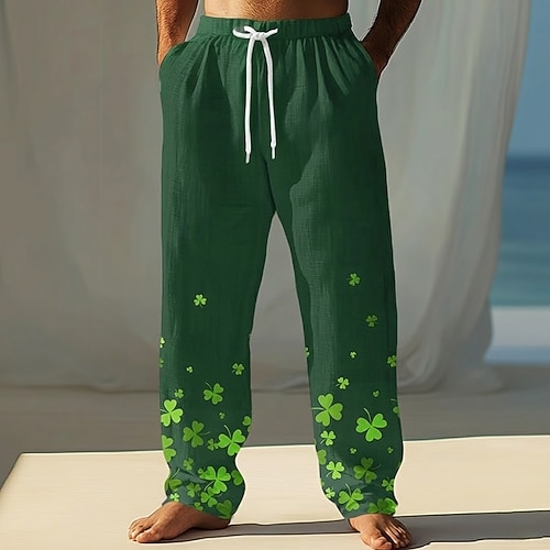 Per uomo Pantaloni Pantaloni Larghi Pantaloni casual Coulisse elastica in vita Pantaloni tipo lino con tasche Mimetico Lunghezza intera All'aperto Vacanza Stile Classico Verde militare Viola