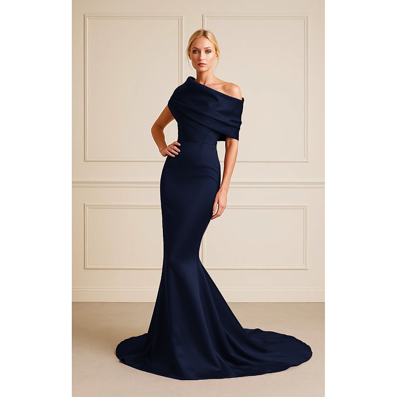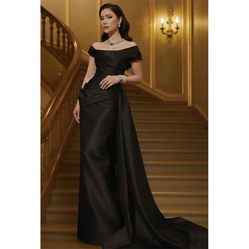 Mermaid Trumpet Sheath Column Sweep Brush Train Evening Gown Ball Gown with Overskirt Formal Dress Elegant Celebrity Style Sleeveless Off Shoulder Garden Party Wedding Stretch Satin with Pleats
