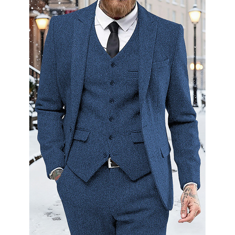 Men's BlazerVestDress Pants Blazer Suits Business Work Wedding Fashion Streetwear Fall Winter Nylon Solid Color 3-Piece Single Breasted Blazer Black Burgundy Navy Blue Royal Blue