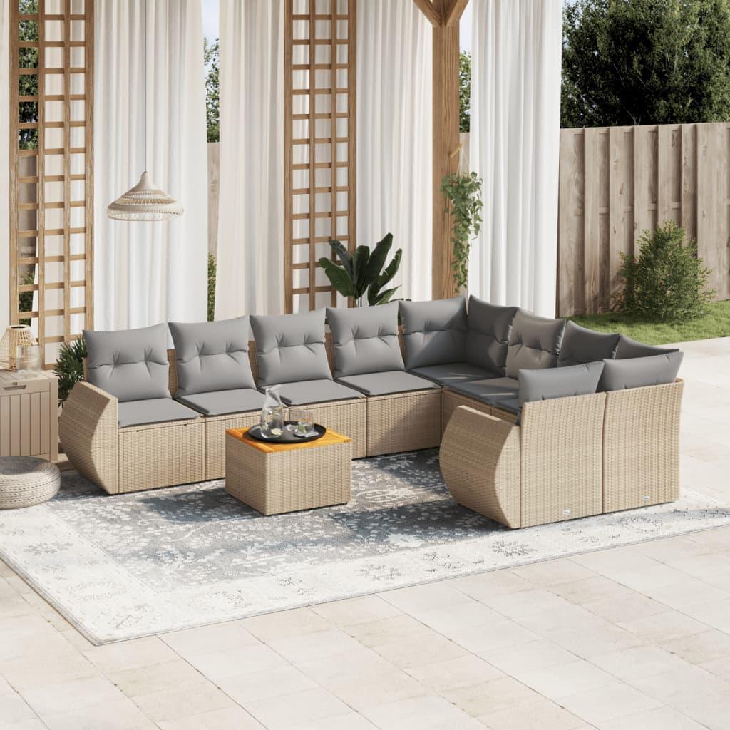 Sofasæt til haven 9 dele med hynder polyrattan beige