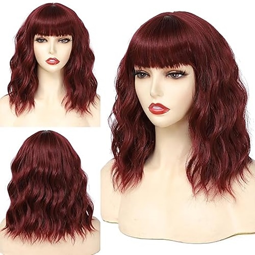 parrucche corte ondulate con frangia per donne parrucche caschetto ricce parrucche lunghe fino alle spalle per donne bianche parrucche sintetiche per costumi da donna con frangia per cosplay