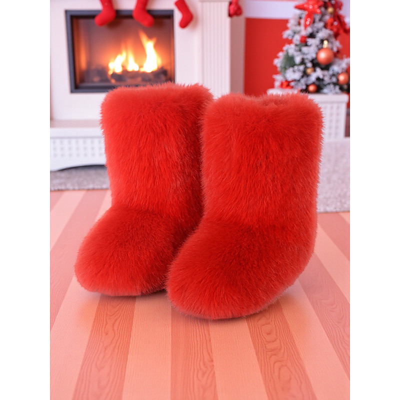 Women's Red Faux Fur Winter Boots – Cozy Snow Boots with Soft Lining, Comfortable for Winter Walks and Cold Weather Casual Wear