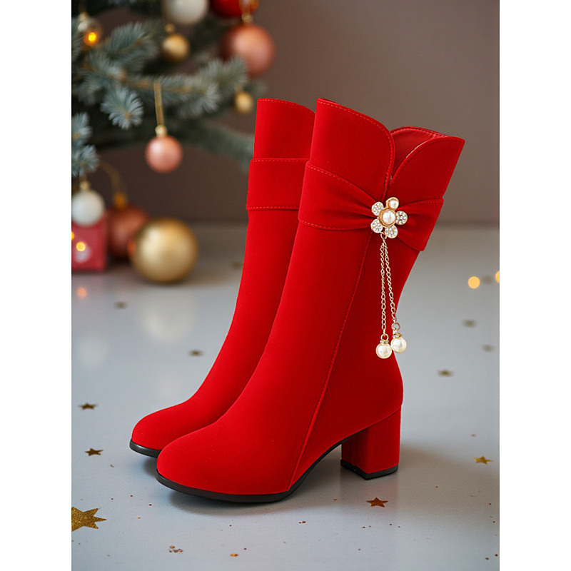 Women's High Heel Christmas Boots with Faux Fur Trim - Festive Holiday Style, Perfect for Christmas Parties and Celebrations