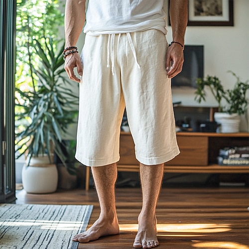 Per uomo Pantaloncini Pantaloncini di lino Bottoni Tasche Gamba dritta Liscio Comfort Traspirante Breve Attività commerciale Lavoro Nero Bianco