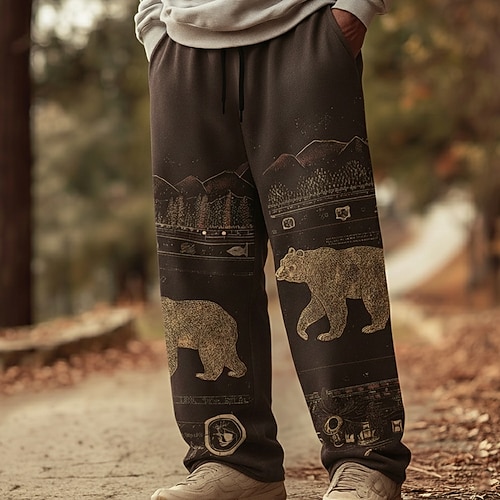 Per uomo Animale Orso Montagna Pantaloni Pantaloni casual Misura del girovita medio Vita elastica con coulisse Vintage Retrò All'aperto Campeggio Escursionismo Caccia Pantaloni a gamba dritta