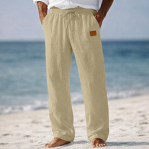 Per uomo Pantaloni di lino Pantaloni Pantaloni estivi Pantaloni da spiaggia A cordoncino Vita elastica Gamba dritta Liscio Comfort Traspirante Lunghezza intera Giornaliero Per eventi Spiaggia
