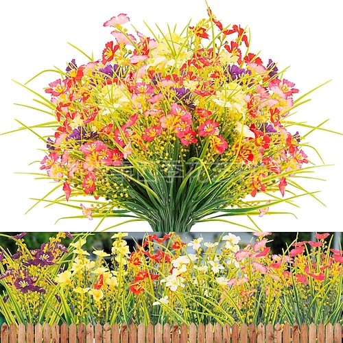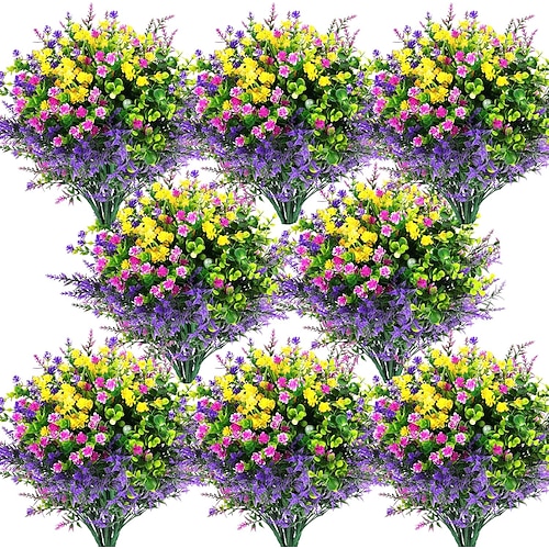 12 mazzi di fiori artificiali da esterno, realistici, resistenti ai raggi UV, piante finte in plastica, piante da appendere per interni ed esterni, decorazioni per fioriere da giardino, verande e