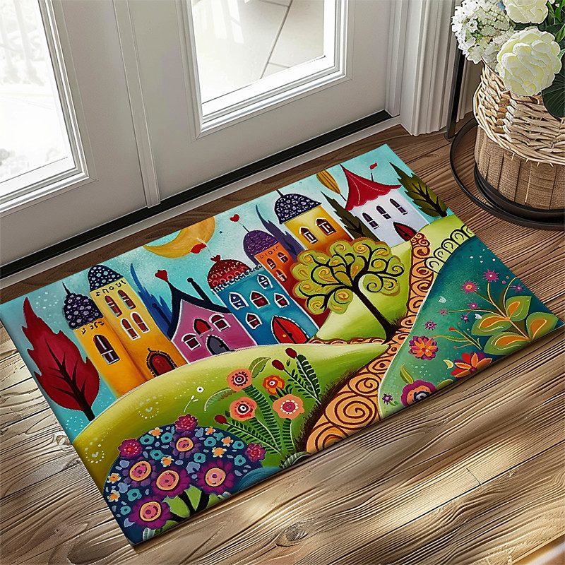 Colorful Houses Doormat Floor Mats Washable Rugs Kitchen Mat Non-Slip Oil Proof Rug Indoor Outdoor Mat Bedroom Decor Bathroom Mat Entrance Rug