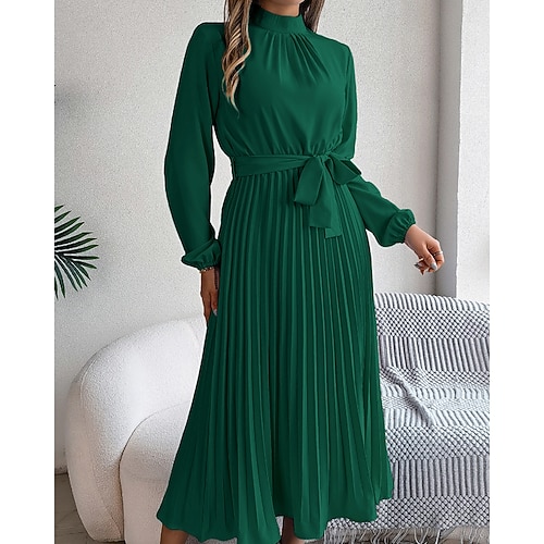 Per donna Abito Midi Abito in Raso Vestito da Festa Abito da Cocktail Abito arricciato Elegante Moderno Festa serale Feste Data Vestibilità regolare Semplice Manica Lunga Collo alla coreana Nero Rosa