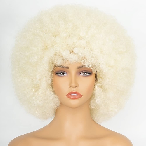 Parrucca afro anni '70 per donna, parrucca afro corta nera naturale, riccia e crespa, parrucca sintetica senza colla con frangia gonfia parrucca afro soffice e rimbalzante per feste cosplay