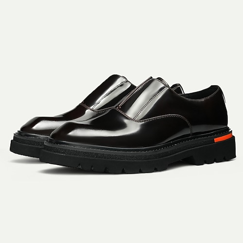 Herren-Loafer aus glänzendem braunem Leder – klassischer Slip-On-Business-Schuh mit quadratischer Spitze für die Arbeit, Bankette und besondere Anlässe