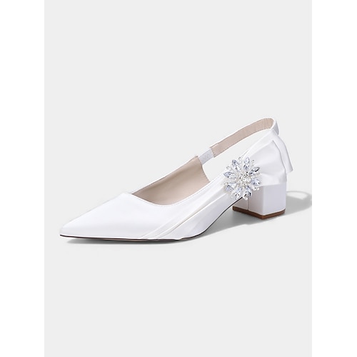 Elegante, rosafarbene Satin-Pumps mit Blockabsatz und spitzer Zehenpartie – elegante, floral verzierte und mit Kristallen besetzte Schuhe für die Mutter der Braut, perfekt für eine schicke Hochzeit in