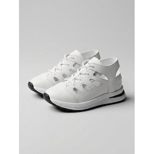 Sandali da passeggio da donna bianchi con lacci – design traspirante e cavo, sandali sportivi casual con suola ammortizzata per l'estate e i viaggi abbigliamento quotidiano