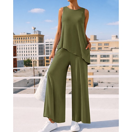 Per donna Set di Pantaloni Bolero Top Senza Maniche Collo a U Semplice Coulisse Attivo Streetwear Quotidiano All'aperto Vacanza Nero Bianco Rosa Primavera Vestibilità regolare