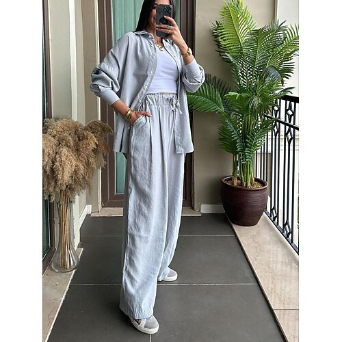 Per donna Set di Pantaloni Manica Lunga Colletto a Camicia Tinta unica Moda Streetwear Casuale Quotidiano All'aperto Blu Nero Bianco Primavera Estate Vestibilità regolare