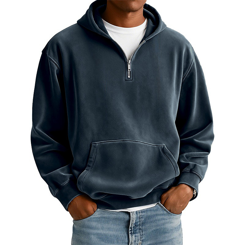 Men's Hoodie Sweatshirt Pullover Quarter Zip Sweatshirt Denim Blue Black Yellow Light Green Pink Standing Collar Half Zip Plain Zipper Sports Outdoor Casual Daily Streetwear Cool Sportswear Spring