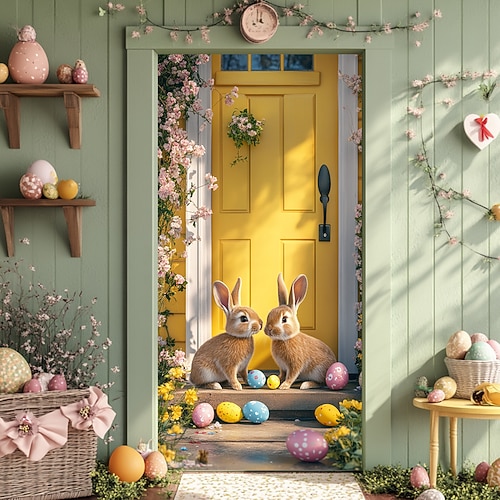 Türdekorationen Türüberzüge Hase mit Eiern Tür-Teppich Türvorhang Dekoration Hintergrund Innen/Außen Türbanner für die Eingangstür Bauernhaus