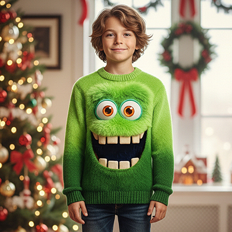 Christmas Boys' 3D Elf Ugly Christmas Sweater Christmas Gift Sweater Long Sleeve 3D Print Fall Winter Fashion Party Kids 4-12 Years Crew Neck Outdoor Daily Regular Fit