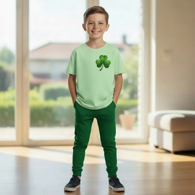 St. Paddy's Day Boys' 3D Graphic St. Patrick's Day Pajamas Pajama Sets Tee Pants Pajama Sets Short Sleeve 3D Print Summer Active Neutral Fashion Kids 4 years Crew Neck Daily Home Causal Regular Fit