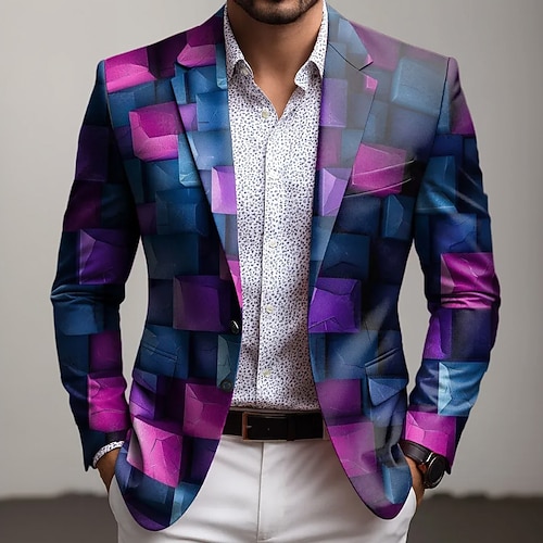 Per uomo Blocco di colori Geometrico Giacca blazer Cappotto Confortevole Traspirante Artistico Casual Casuale Quotidiano Abbigliamento da sera Stampa 3D Bottoni Multi-tasche Tutte le stagioni