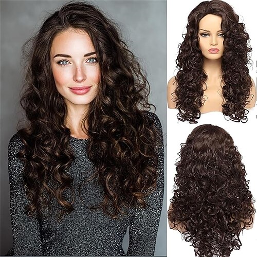 parrucca lunga riccia con capelli rossi di volpe ondulati e testa piena rosso rame per festa di carnevale
