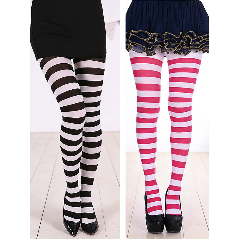 Women's Carnival Party Striped Tights Set (2 Pairs), Stretchy Over-the-Knee Style, Blue Green Horizontal Stripe Design, Fun Costume Socks for Adults, Festival, Carnival, Cosplay Theme Parties