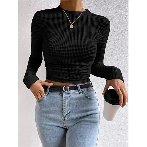 Per donna Maglietta Tinta unica Casual Manica Lunga Girocollo Top Regolari Quotidiano Uscire Asimmetrico Blu Nero Rosso Marrone Verde Primavera Autunno