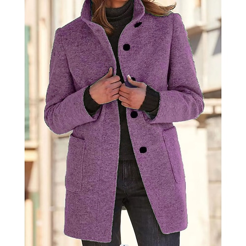 Per donna Cappotto Invernale Caldo Confortevole Patchwork Tasca Bottoni Vintage Moda Casual Tinta unica Vacanza Streetwear Casuale Abbigliamento quotidiano Lungo Collo alla coreana Vestibilit