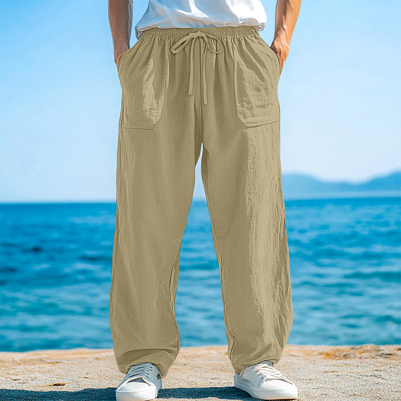 Men's Cotton Linen Pants Trousers Summer Pants Baggy Pants Beach Pants Drawstring Front Pocket Straight Leg Plain Comfort Soft Full Length Yoga Holiday Beach Vacation Fashion Black White Inelastic