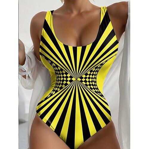 Costume da bagno intero da donna snellente colorblock monokini alta vita controllo pancia snellente senza schiena vacanza vintage grafica geometrica scollo a U senza maniche