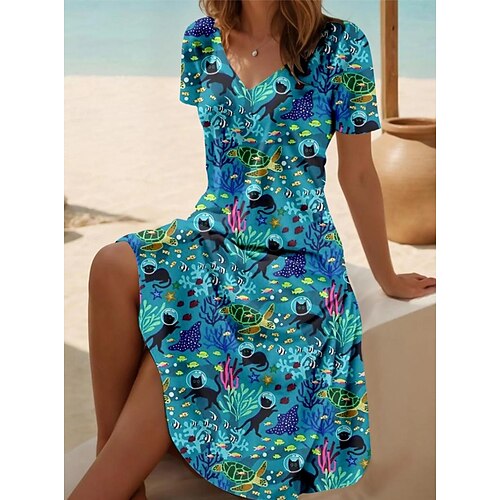 Per donna Mini Abito Vestito T-Shirt Vestito Estivo Abito a trapezio Vacanza Casual Boho Spiaggia Uscire Vestibilità regolare Floreale Grafico Manica Corta Scollo a V Blu Giallo Estate Primavera
