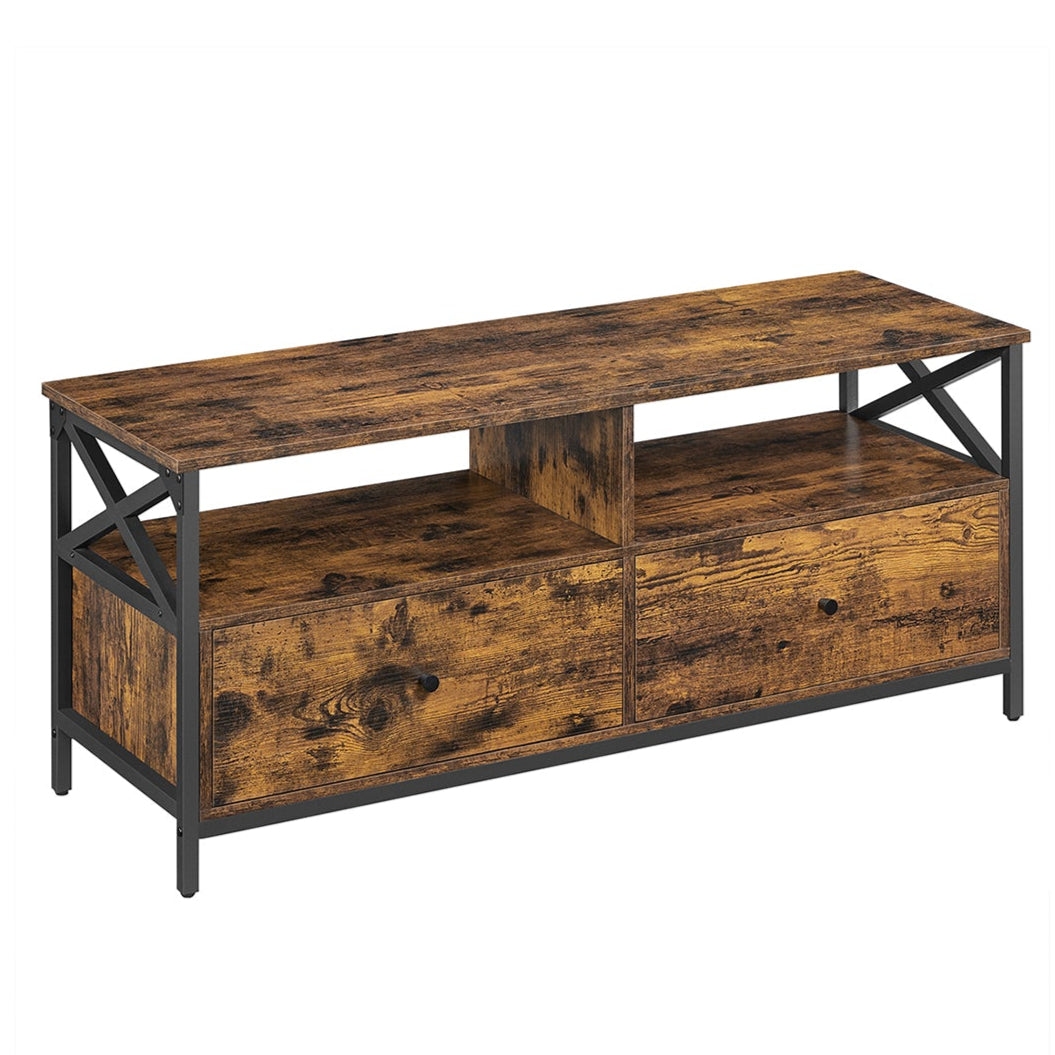 Helloshop26 - Industrieller TV-Ständer für Fernseher bis 55 Zoll mit 2 Schubladen und 2 offenen Regalfächern 120 x 40 x 50 cm für 12_0006555
