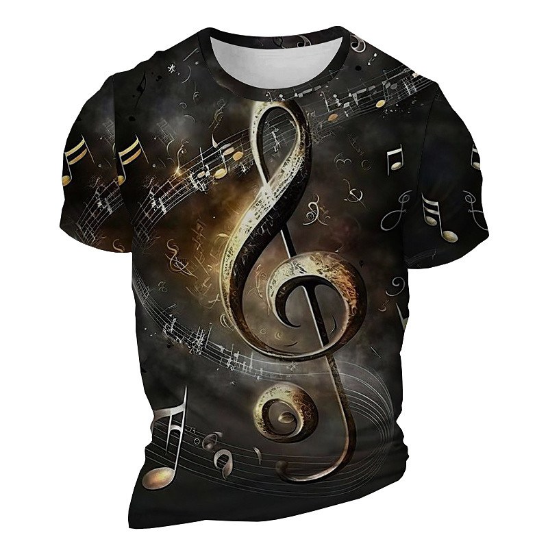 Music Festival Men's Graphic Musical Notes T Shirt Short Sleeve T shirt 3D Print Crew Neck Shirt Daily Designer Retro Vintage Sports Outdoor Holiday Going out Red Blue Khaki Spring Summer Clothing