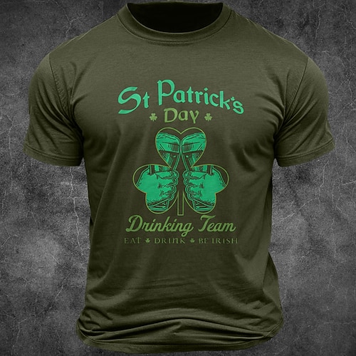 Festa di San Patrizio Per uomo Quadrifoglio Bandiera irlandese Maglietta 100% Cotone Manica Corta Grafico Camicia Nero Bianco Verde militare Maglietta comoda Streetwear Ferie Abbigliamento di stilista