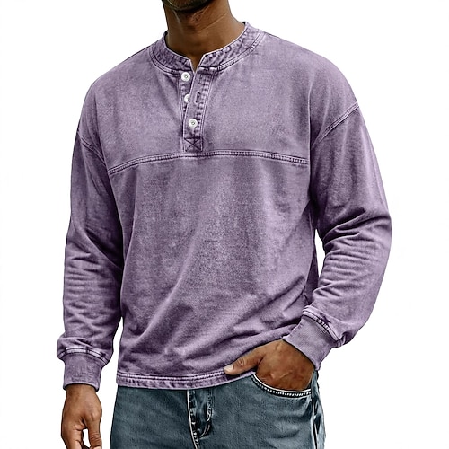 Per uomo Camicia 100% cotone lavaggio acido Maglietta Manica Lunga Collo alla coreana Primavera Autunno Autunno Inverno Semplice Vintage Streetwear Casual Con zip Base Casa Streetwear Casuale Nero