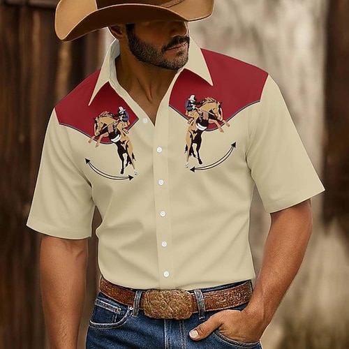 Per uomo Cowboy Color-blocking Camicia Camicia Western Camicia da cowboy Manica Corta Vintage Retrò All'aperto Vacanza Abbigliamento da lavoro Estate Primavera Collo ripiegato Stampa 3D Camicia tipo